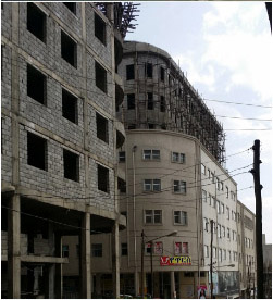 The aspiration is creating places – spaces that strongly enhance the socio-cultural and economic activities of people; places that are the combination of space, context and social interaction – a place of character that enhances a sense of belongingness that make their residents proud in identifying themselves with the surrounding thereby boosting their identity. In addition, the block structure is surrounded by colonnades, which cover the social spaces from sun as well as rain, and follow the tradition of the neighboring Piazza area, built by the Italians in the 1940ies. EiABC even proposed a new instrument to regulate the façade structure of the buildings, avoiding full glassed facades, which destroy the social character of the neighborhood and increase the energy consumption of the buildings.